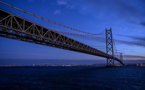Nikon Z f / Nikon NIKKOR Z 24-70mm F4 S 霞むくらい遙か先まで続く瀬戸大橋やしまなみ海道と比べるとややロマンに欠ける明石海峡大橋だけど、これはこれでよい。 たしか時報のため消灯中も3...