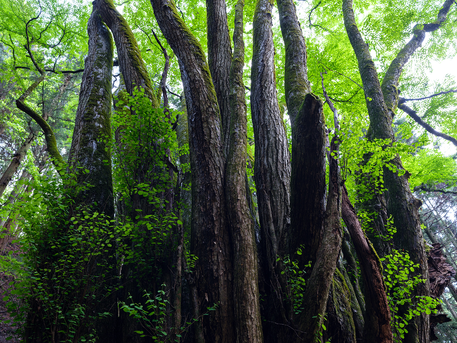 個人的には自然な姿の方が好きですね。朽ちた大枝が倒れ、ここから新たな大枝が育つというサイクルが垣間見えて好ましい。