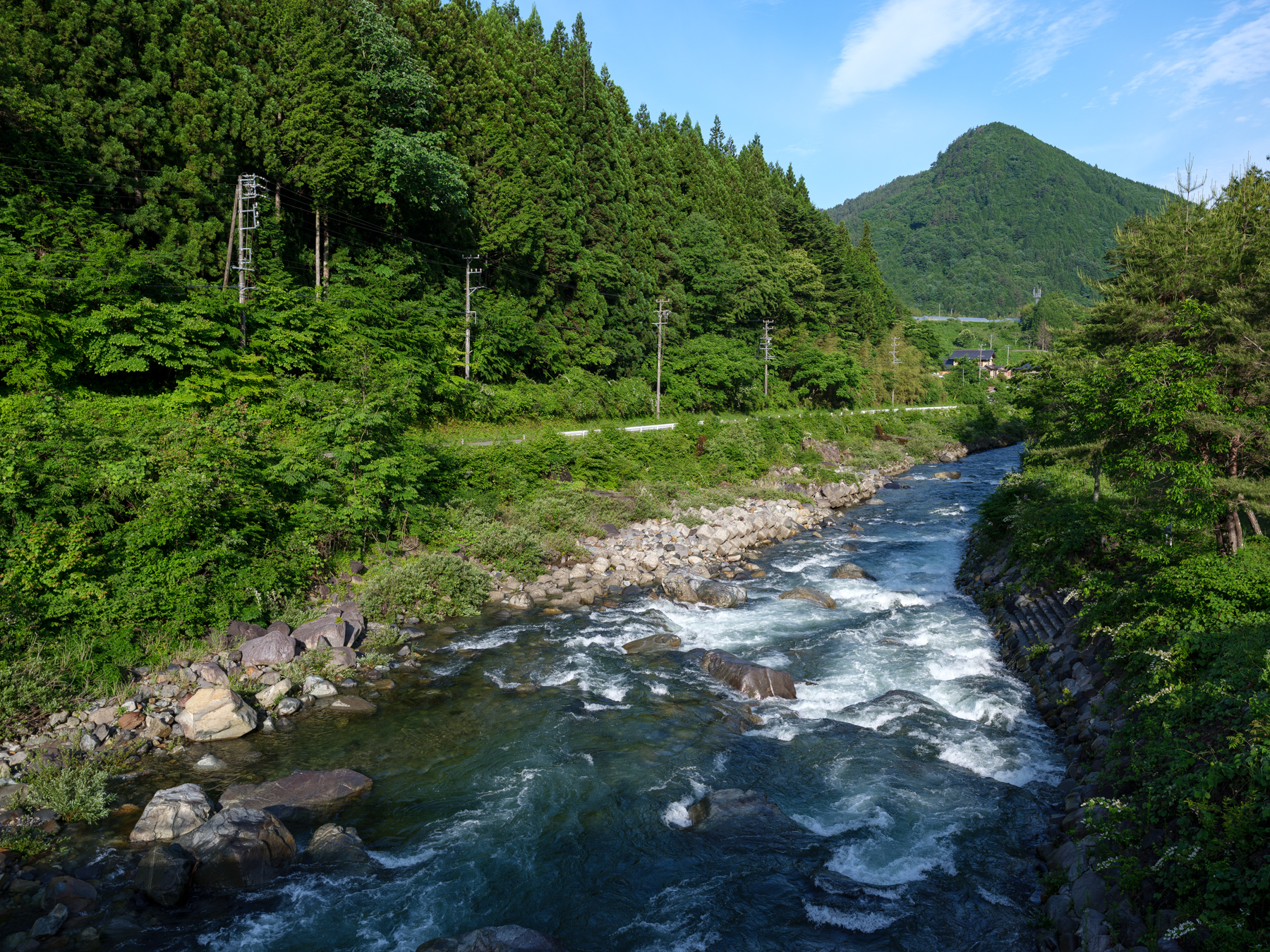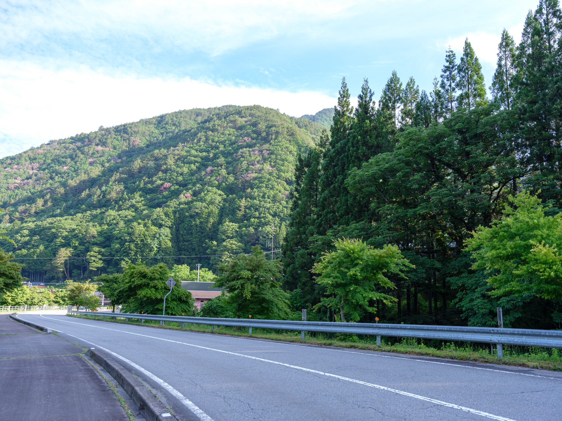 「道の駅 南飛騨小坂はなもも」から車で数分。東へ進んで「ひめしゃがの湯」に向かう道中にそびえています。