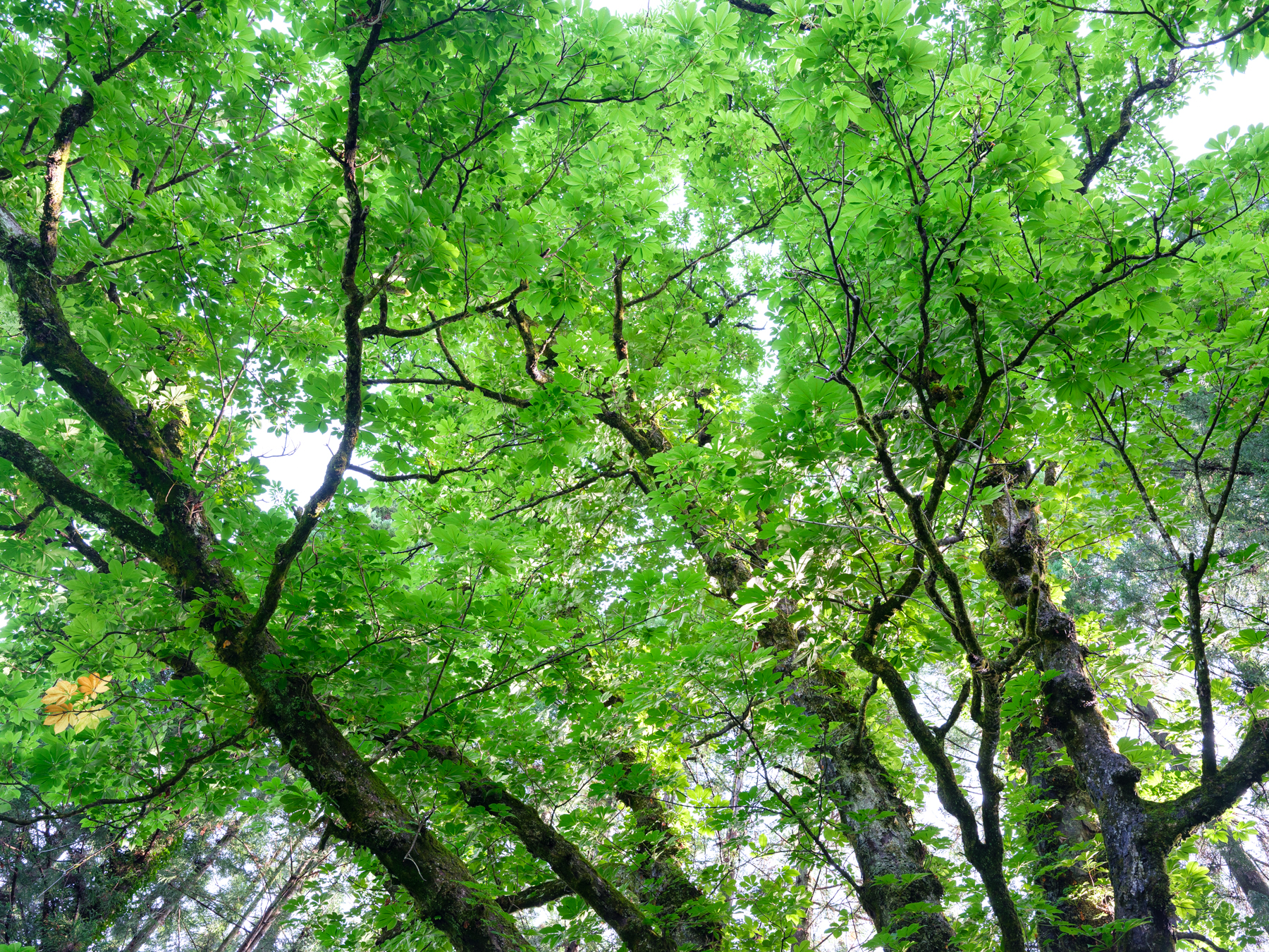 足元の雑草が茂りすぎていて居心地がいい!何時間でも眺めていられる!とまで言えないのが残念ですが、異常なほどの空気のうまさ、トチの樹冠の美しさに「ああ、本当に来てよかったなあ…」とうっとりしてしまいました。