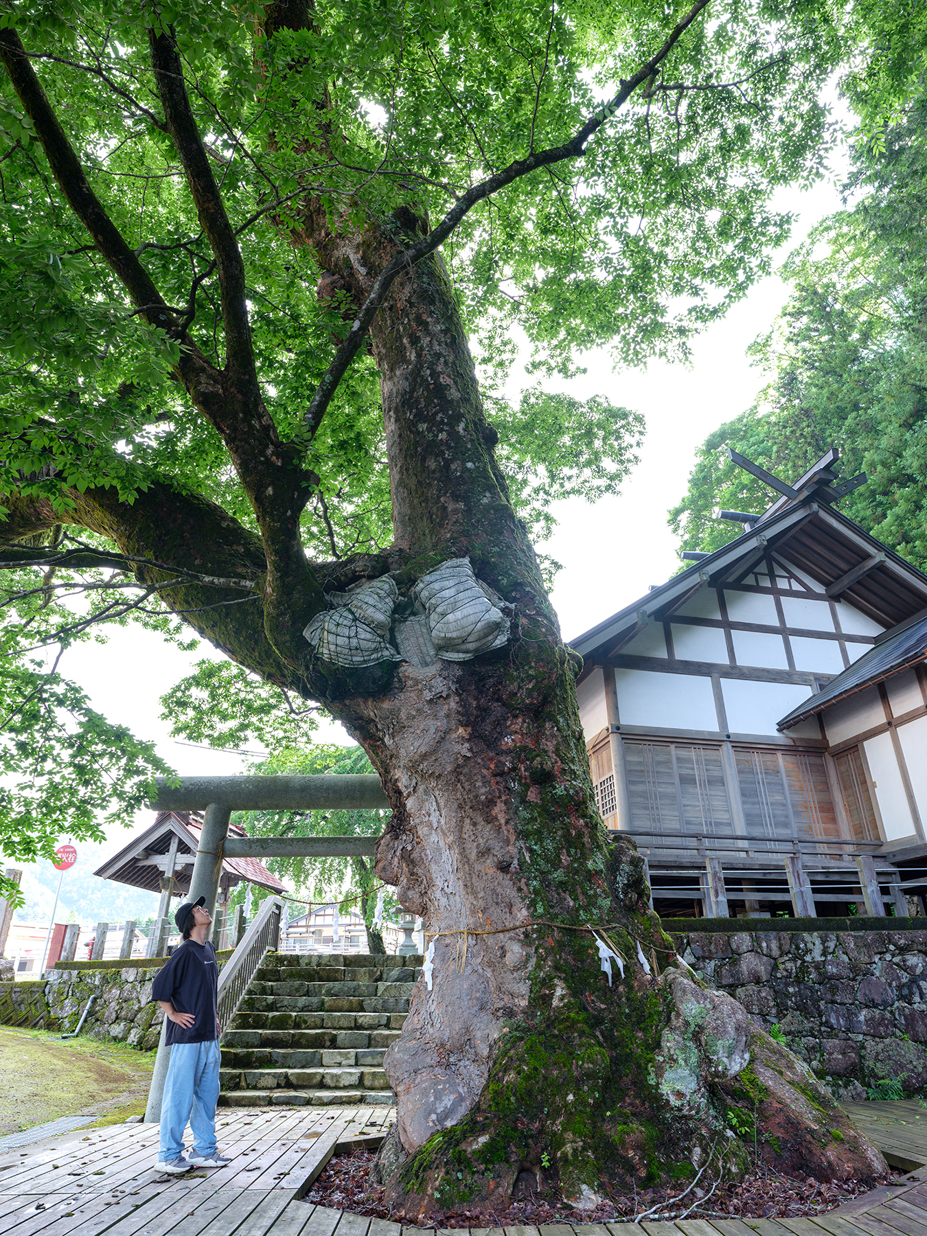 根回りが踏み固められてしまわないようウッドデッキで覆われており、大切に扱われていることが窺えます。