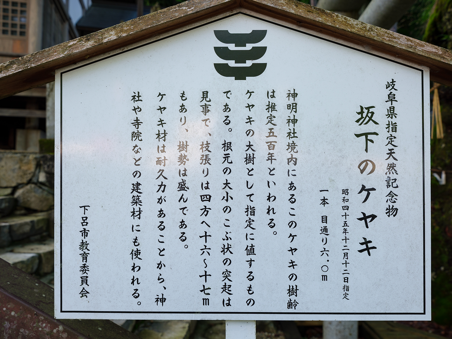 岐阜県指定天然記念物「坂下(さこれ)のケヤキ」。
