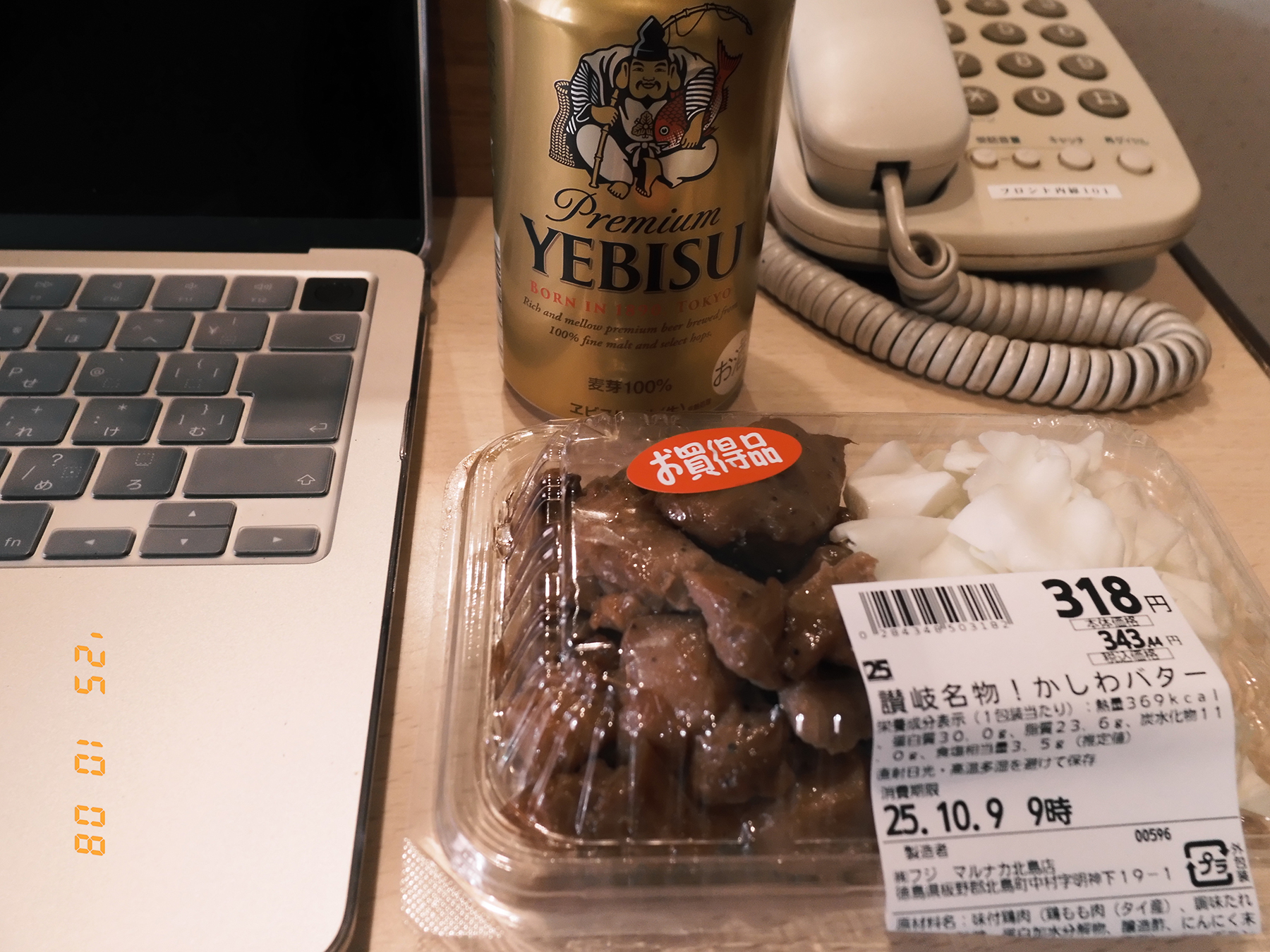 昨晩は仁尾産の鯛で鯛しゃぶ、鯛めしをご馳走になりビール×4でフィニッシュ。19:30解散。