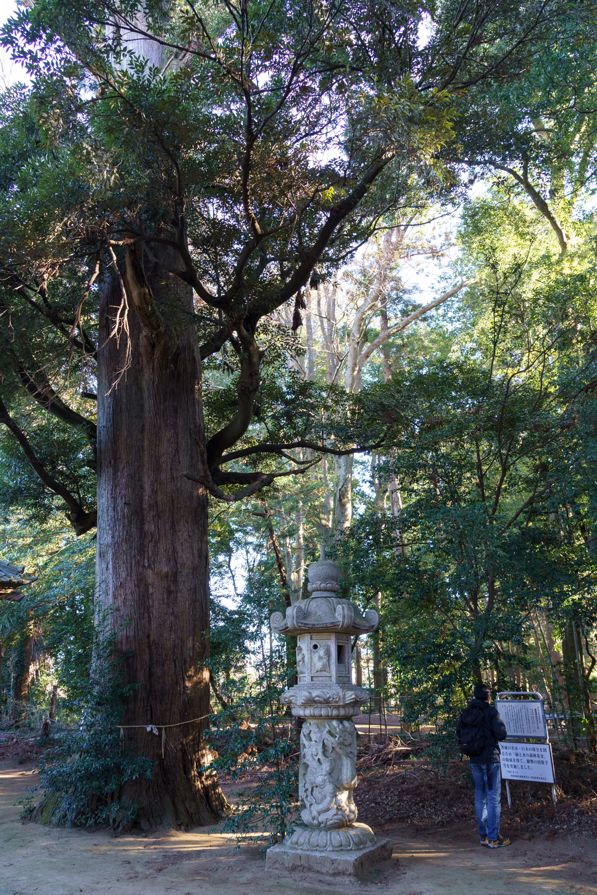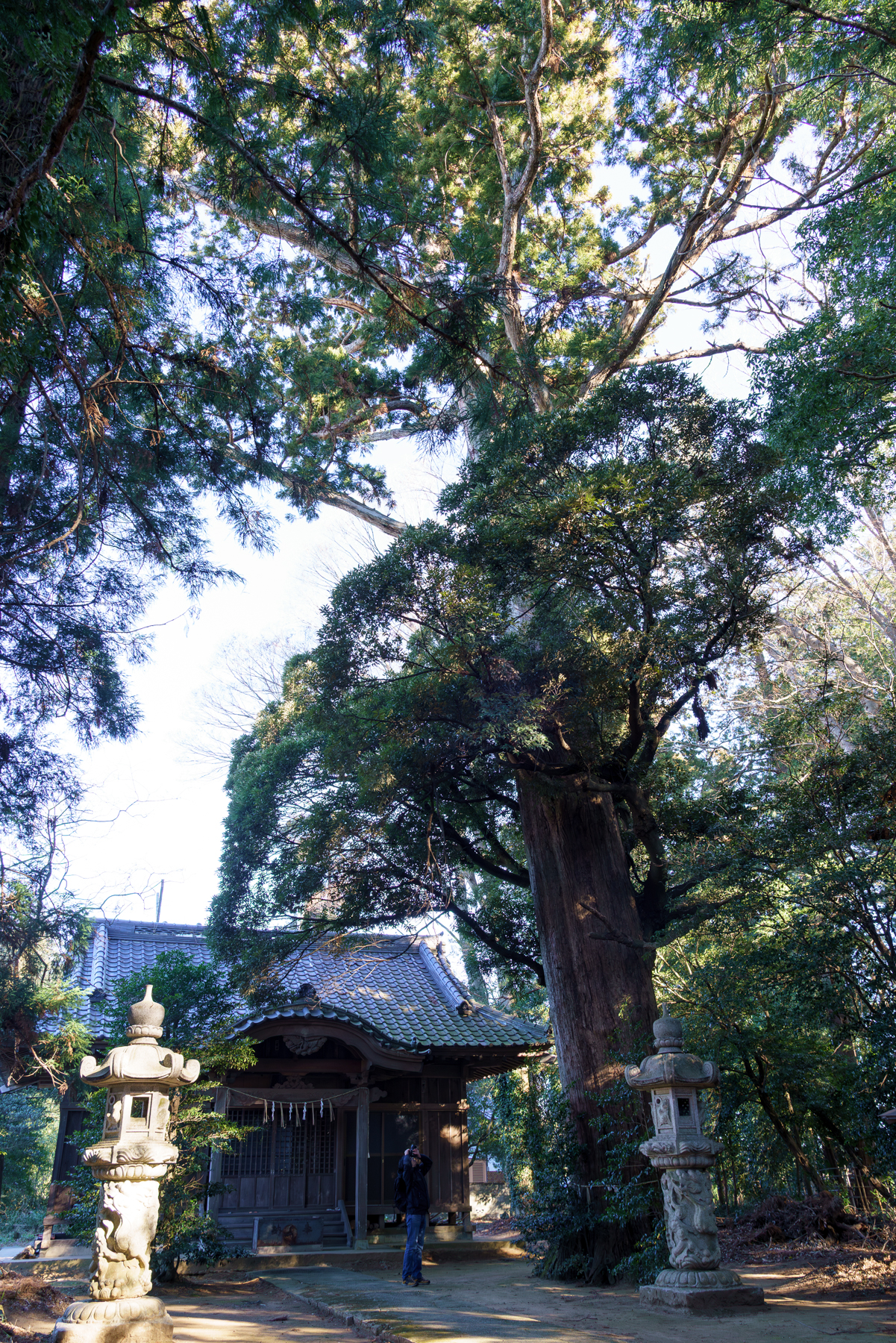 さて現地到着。茨城県の鹿島神社というと、よそ者の私はどうしてもかの有名な鹿島神宮を連想してしまいますが、こちらどこの地域にも一つは必ず存在するであろう地区の小さな神社といった佇まい。早速参道を抜けた先の御神木と対面するわけですが、うん、たしかに立派なスギの御神木ですよ?しかし何だ、茨城県の巨樹を極めた男として名高い狛さんが新年一発目としてチョイスするほどの大杉なのか?と失礼ながらいささかの不安を感じざるを得ません。