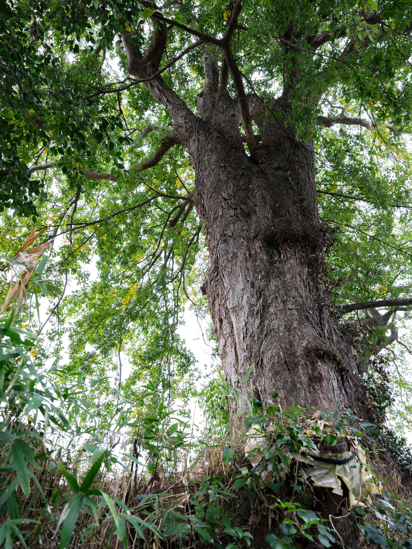 巨樹めぐりでは大体目的となるメインの一本を決めて、それを補強するように数本の巨樹を足してルートを考えます。メインとはタイプが被らないもの、珍しい樹種、時期ものとして見ておきたい樹種等々。メインの一本が期待をさらに上回る存在感を見せてくれたときは当然嬉しいのだけど、サブにしか考えていなかった巨樹が想像の範疇を上回ってくれたときはそれと同等、下手するとそれよりも遥かにテンションが上ってしまう。一つの醍醐味と言えましょう。