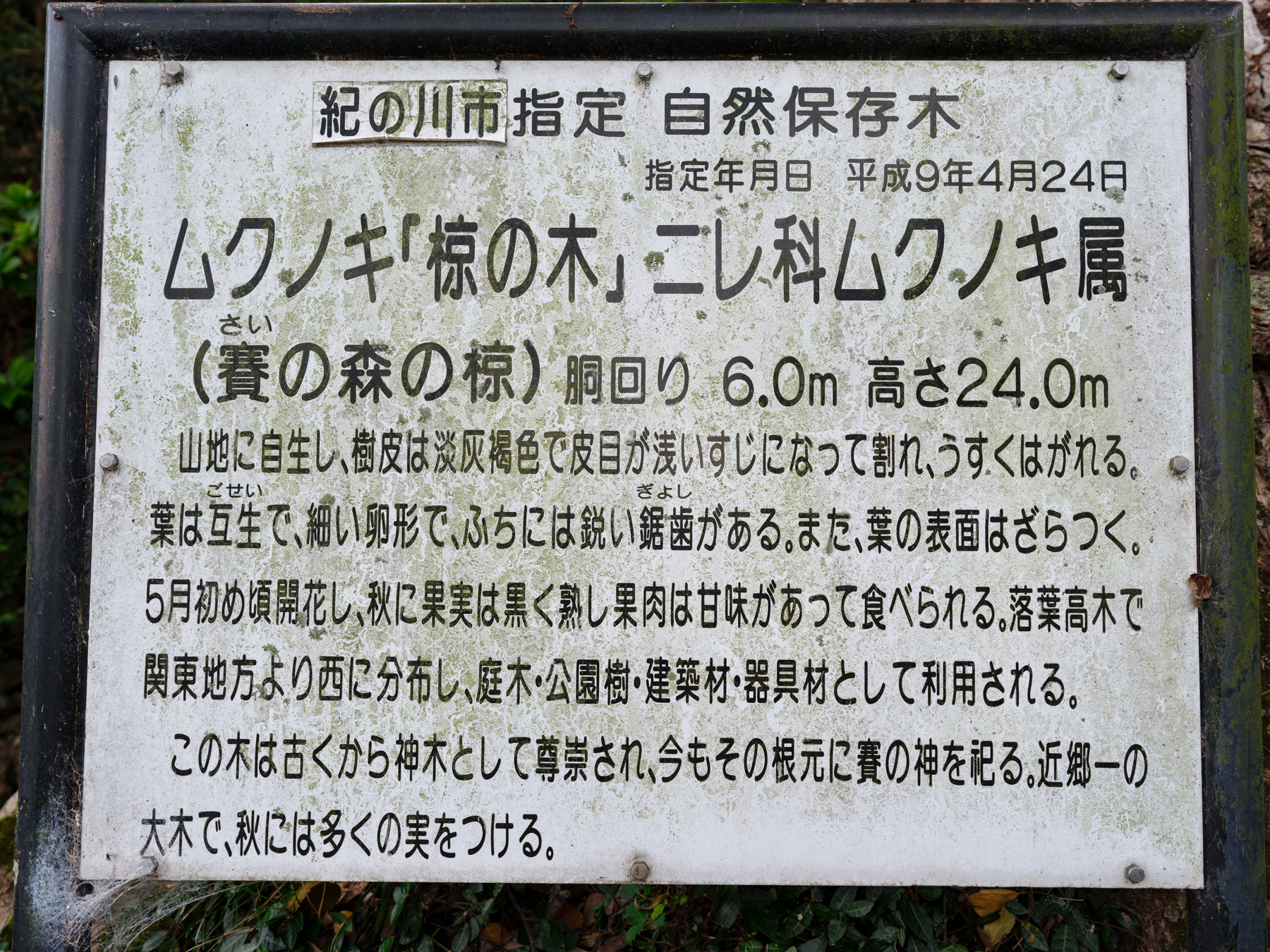 ムクノキへと至る坂道は紀州富士とも呼ばれる竜門山(龍門山)ハイキングコース・勝神ルートに含まれているらしい。