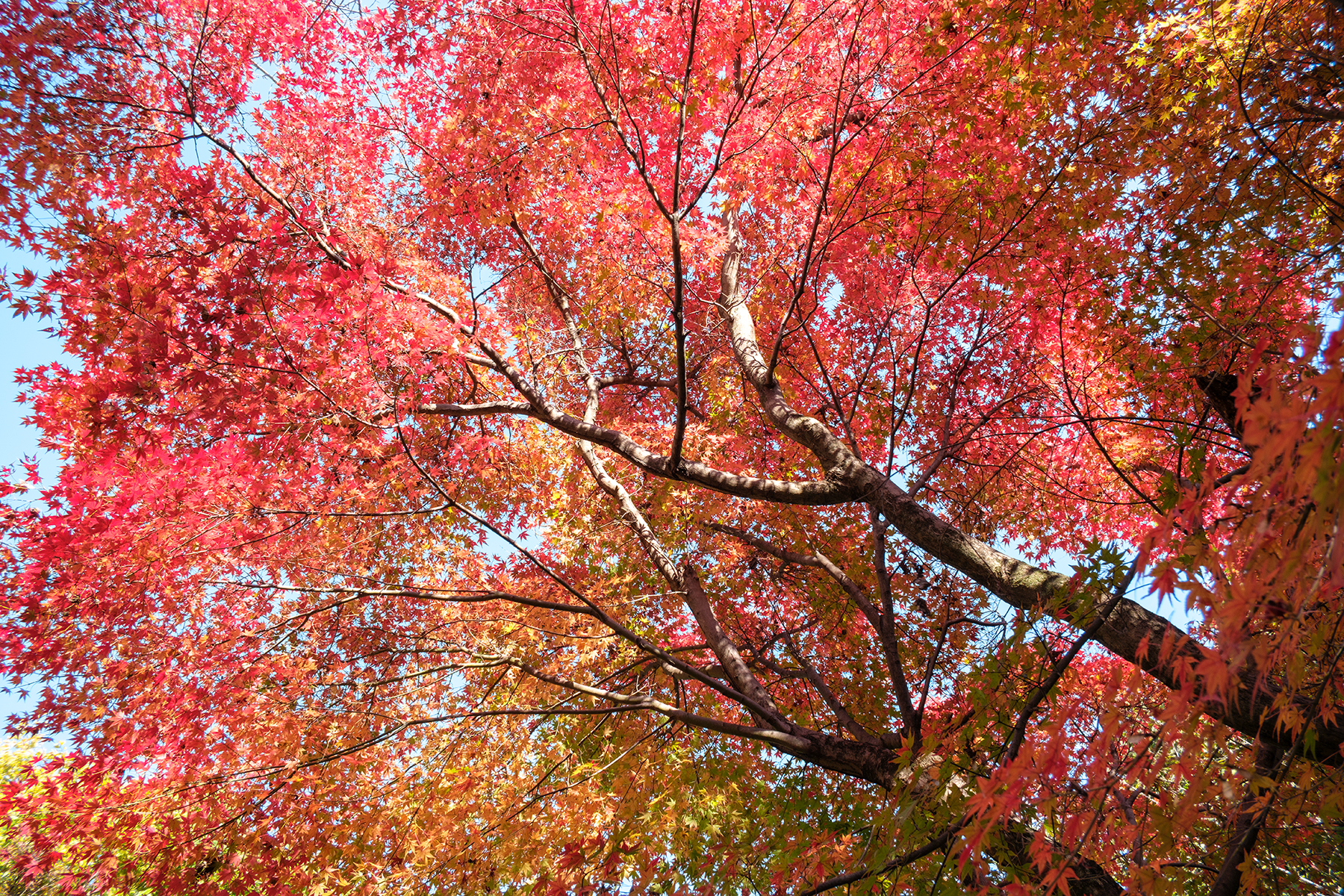 京都の紅葉もそろそろピークか。間近で見ると夏の灼熱地獄による枯れが目立つのだけど、少し離れて眺める分には美しい。