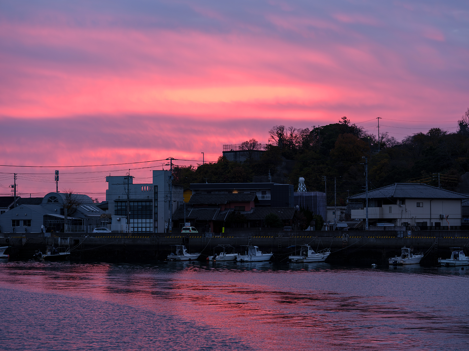 なお中望遠レンズで切り取っているからそれらしく見えるだけで、実際焼けているのは空のごく一部だけなのだった。