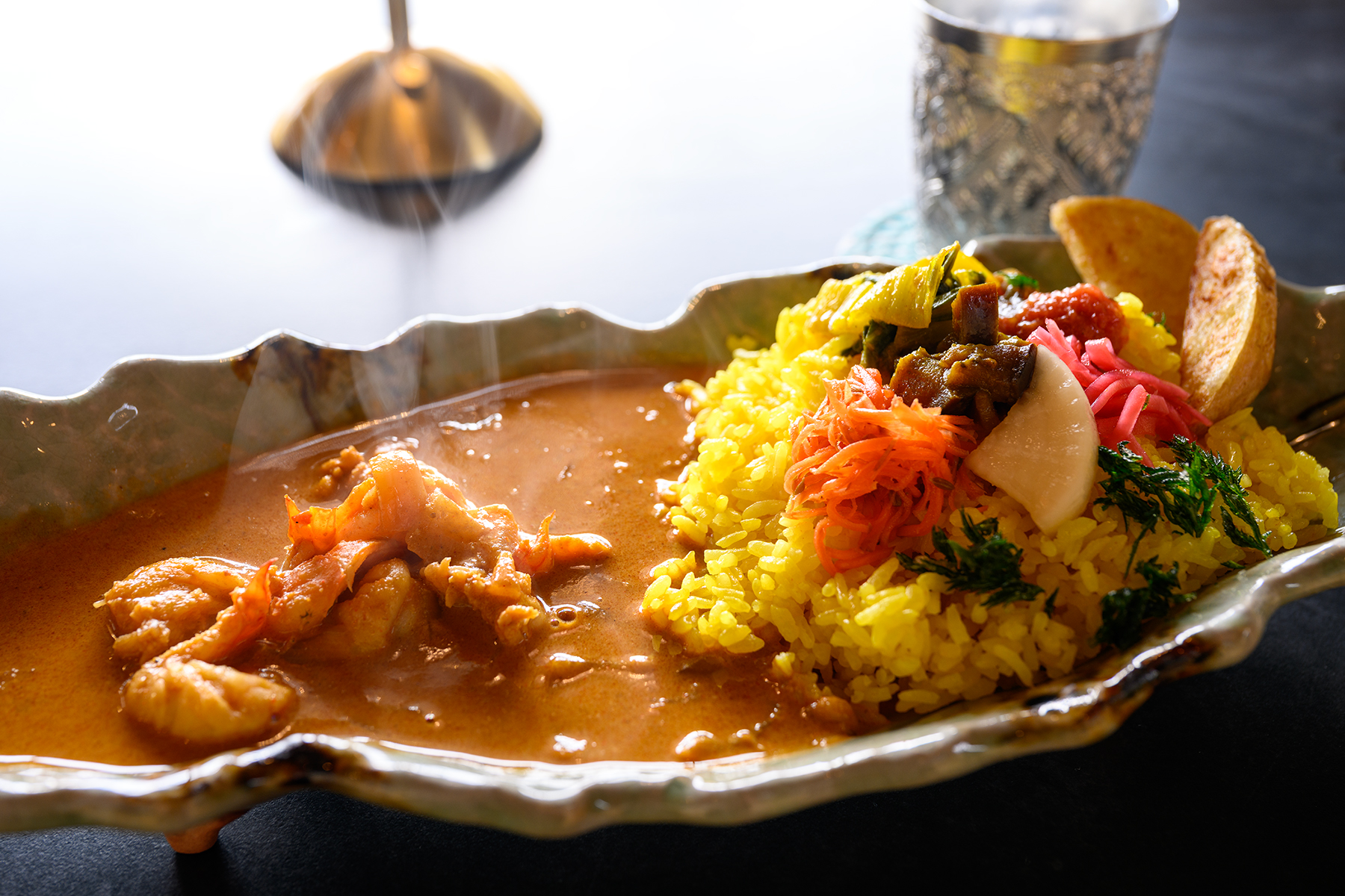 昼食はえびカレー。値段を見て流石に観光地価格だな…と思ったが文句無しの美味しさだった。
