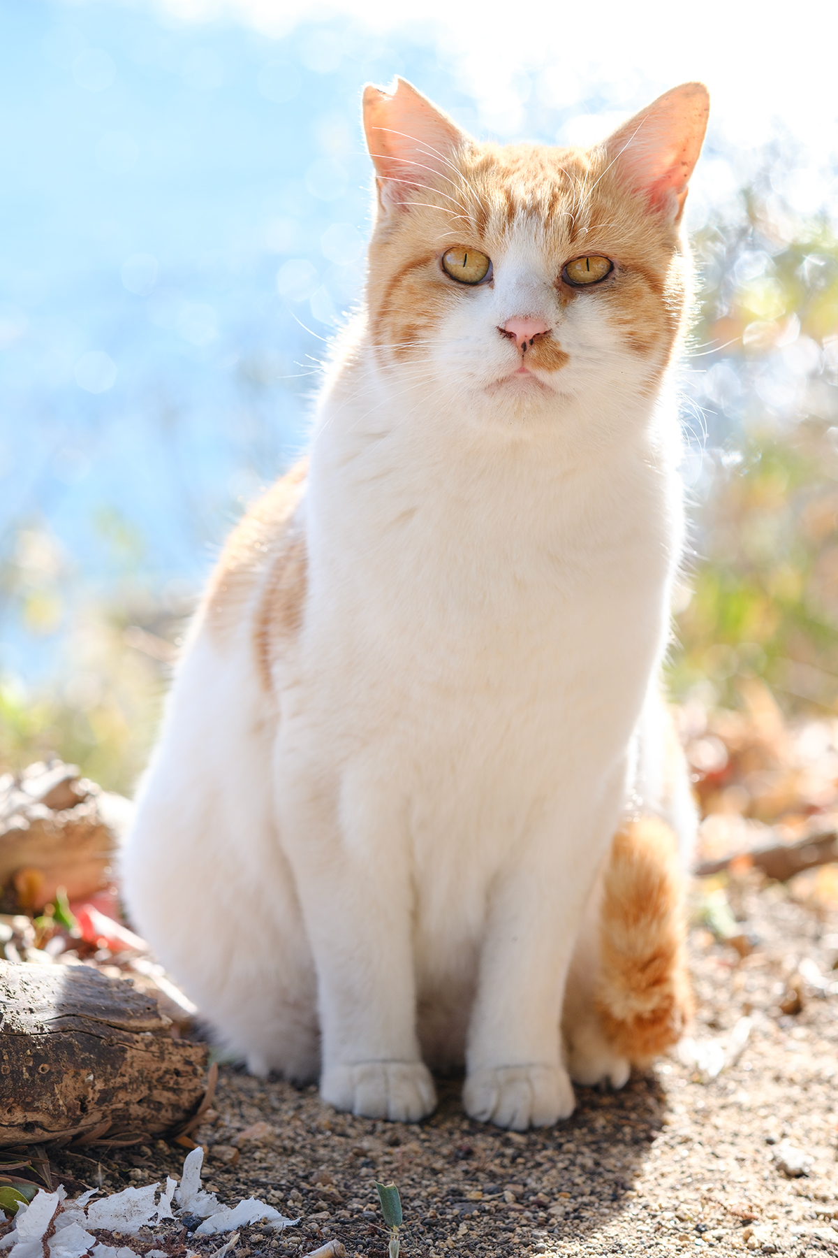 ネコたちに倣い御香宮の階段に腰掛けて瀬戸内海をぼけーっと眺める。