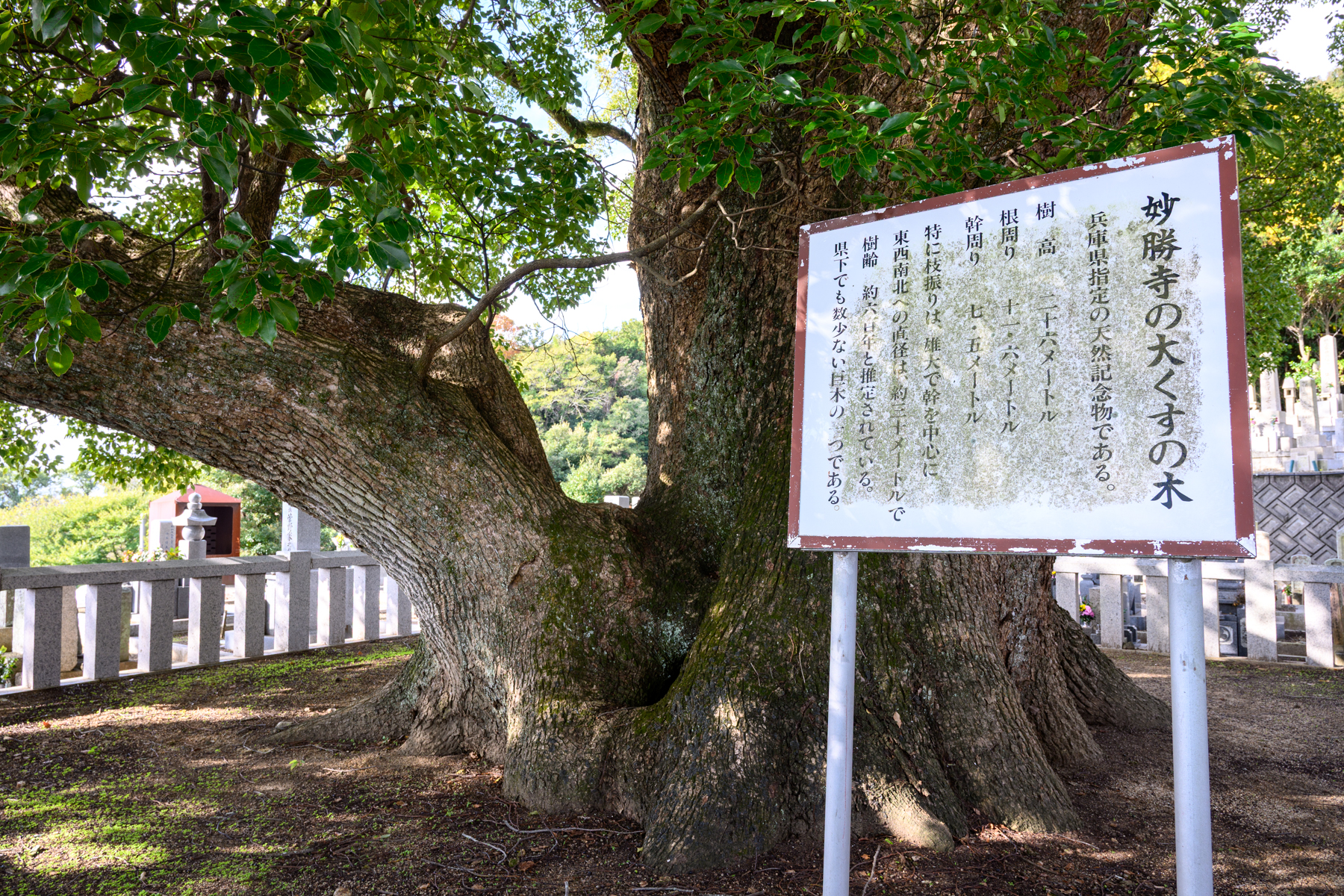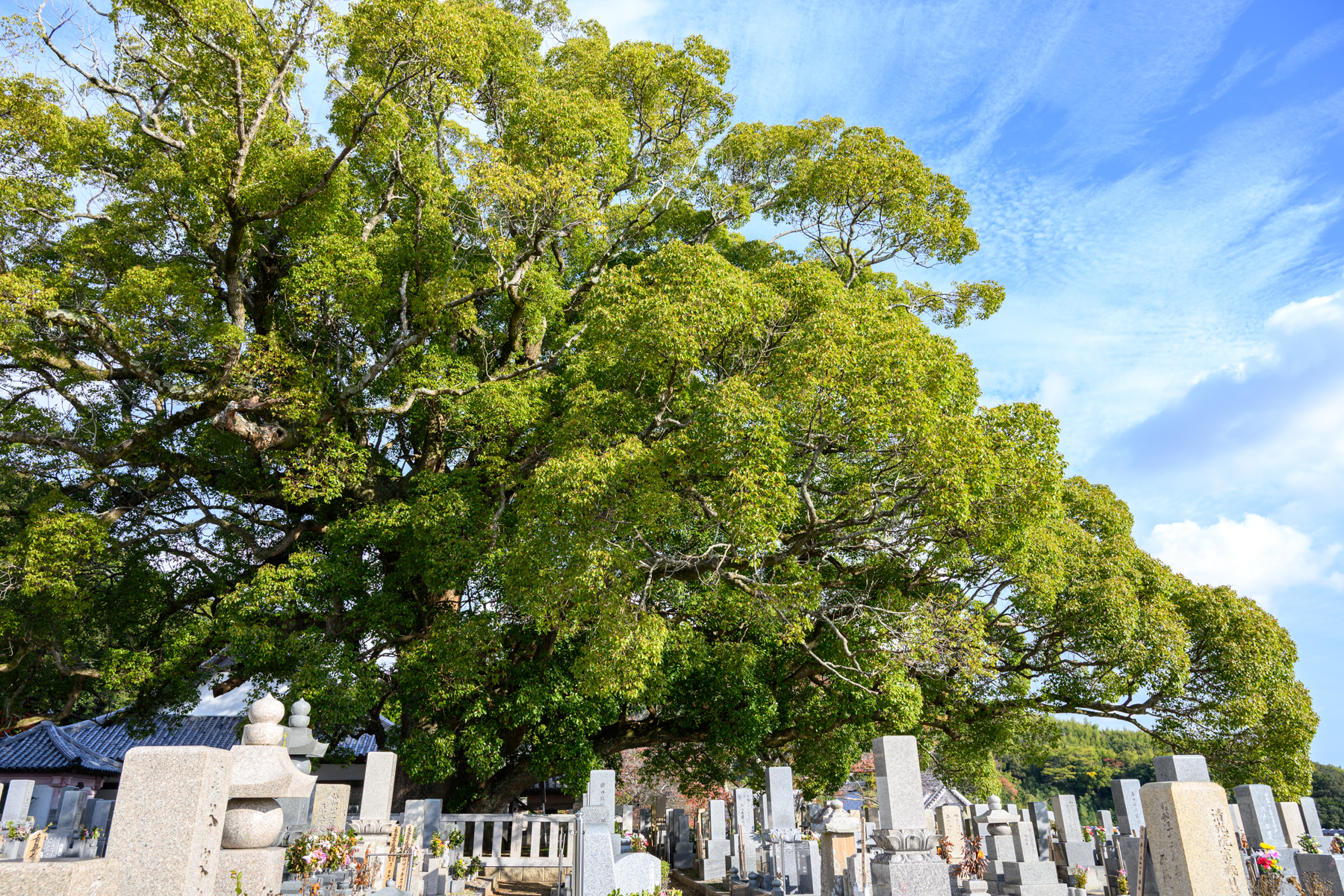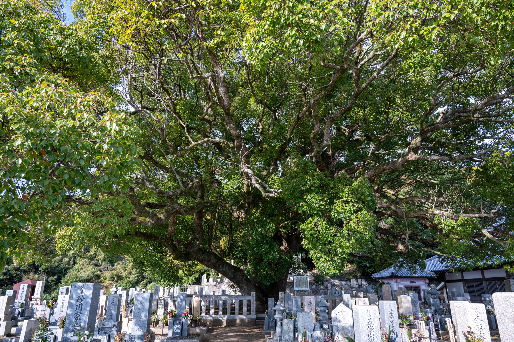 墓地のど真ん中にそびえる立派な大クスノキ。