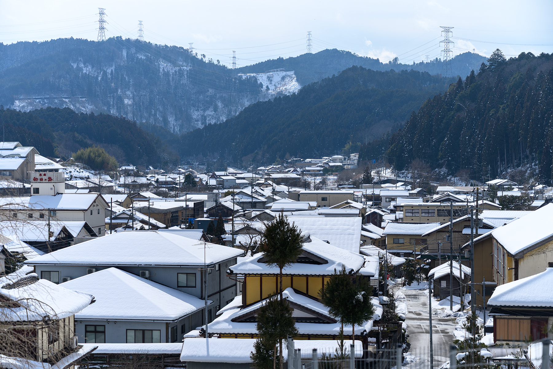 早速の雪道散歩。遠景の写真で何ですが…