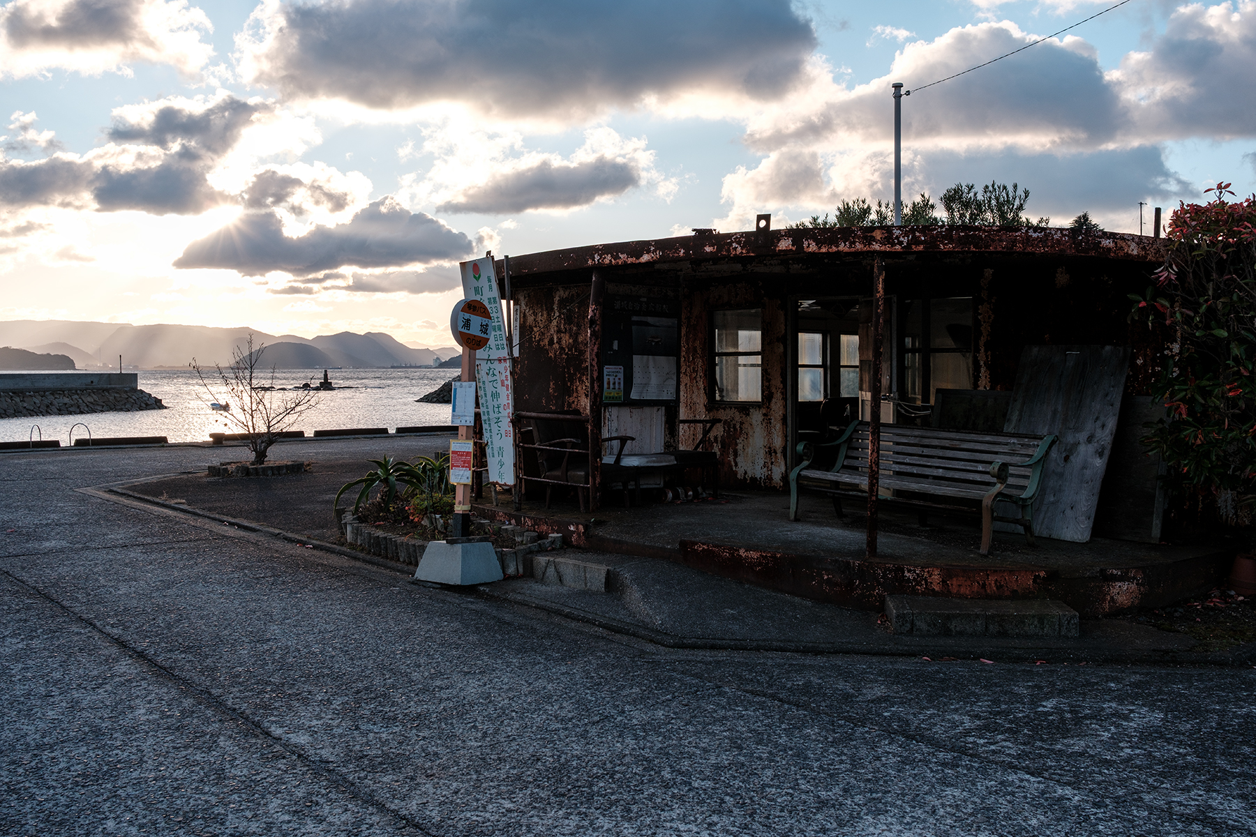 ものすごいバス停の中で白湯をいただいた。たまにはコーヒーでなく白湯もいい。